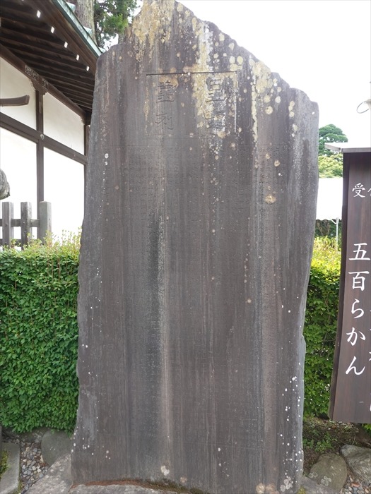 入口右手の「 石造参尊五百羅漢記 」と題する享和3年(1803)銘の石碑。