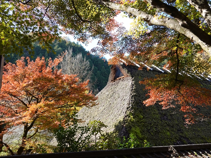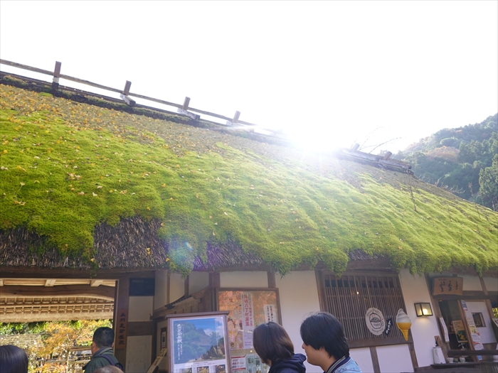 正面の「 長屋門 」の屋根には緑豊かな苔そして役目を終えたイチョウの葉が一面に。