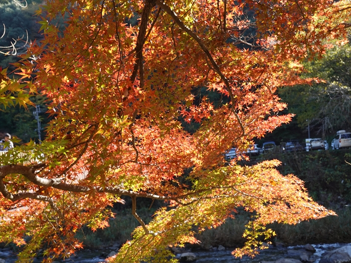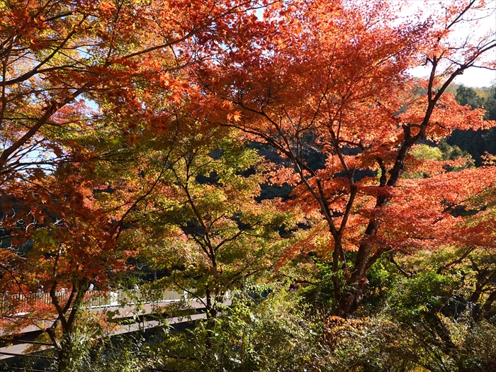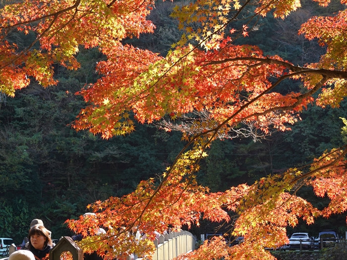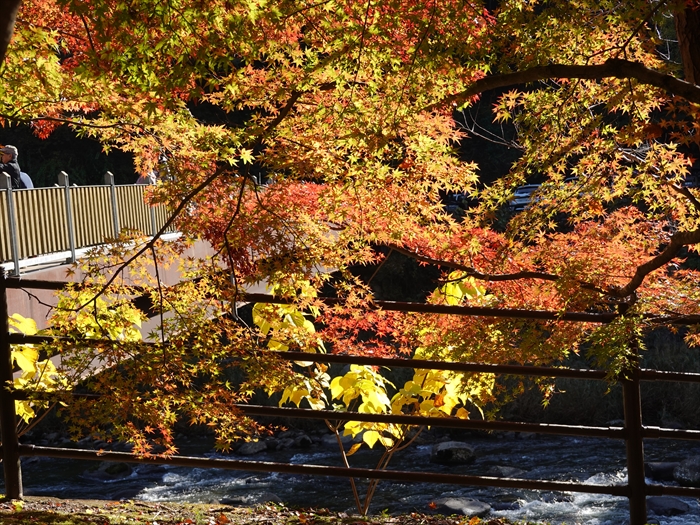 香嵐渓には、上流から人道吊橋の 香嵐橋(こうらんきょう) 長さ:42m、人道鉄鋼橋の