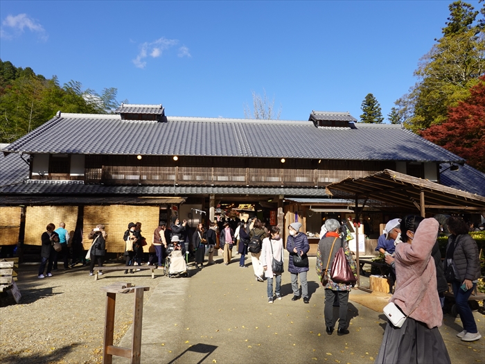 「三州足助屋敷」の茅葺きの屋根の建物・母屋 が現れた。