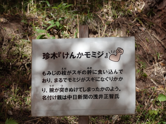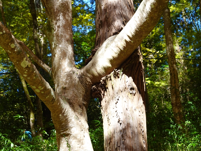 モミジの枝、いや幹ががスギの幹に食い込んで !!