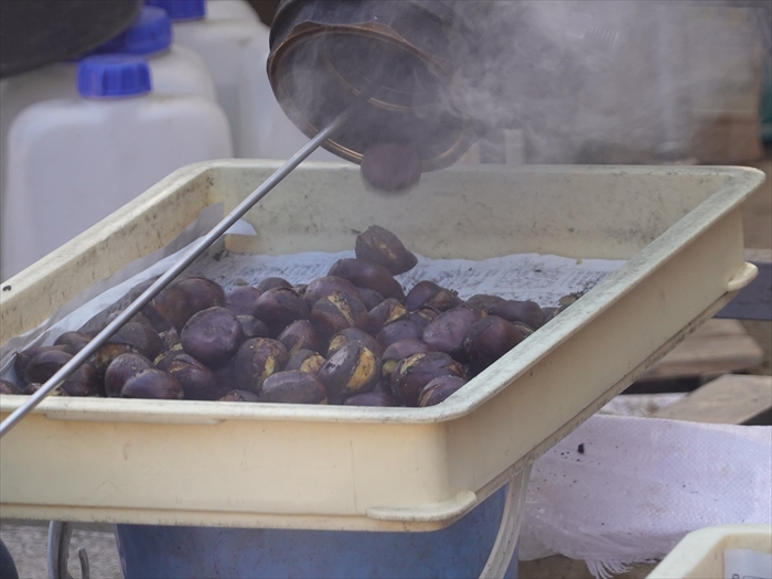 多くの観光客が仮設テーブルの上の地元の味を楽しんでいた。