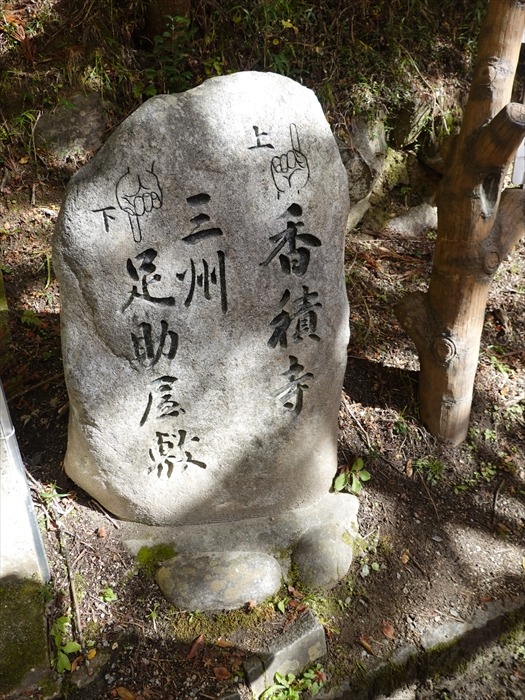 ↑香積寺 ↓三州足助屋敷 」案内碑。