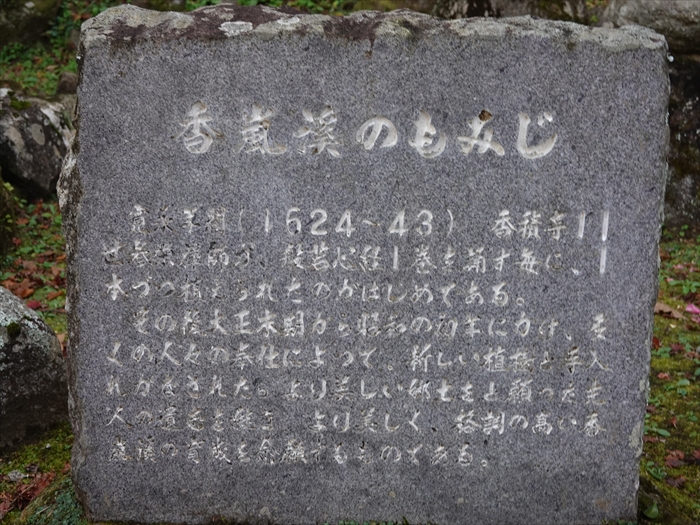 なされた。より美しい郷土をと願った先人の遺志を継ぎ、より美しく、格調の高い香嵐渓の
