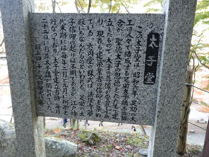この太子堂は、昭和六年、足助の大工の人々で結成する足助太子講工匠組合が、聖徳太子の