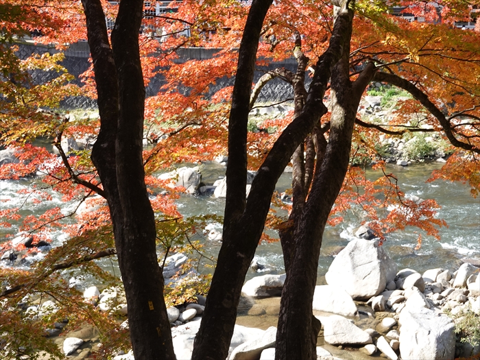 紅葉越しの巴川。