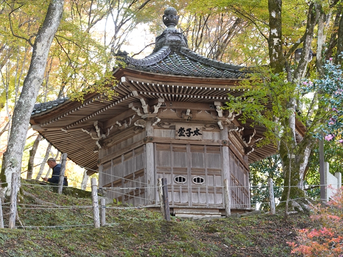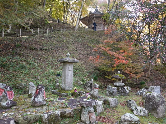 石仏・石碑群の上方に 六角堂の「太子堂」 の姿が。