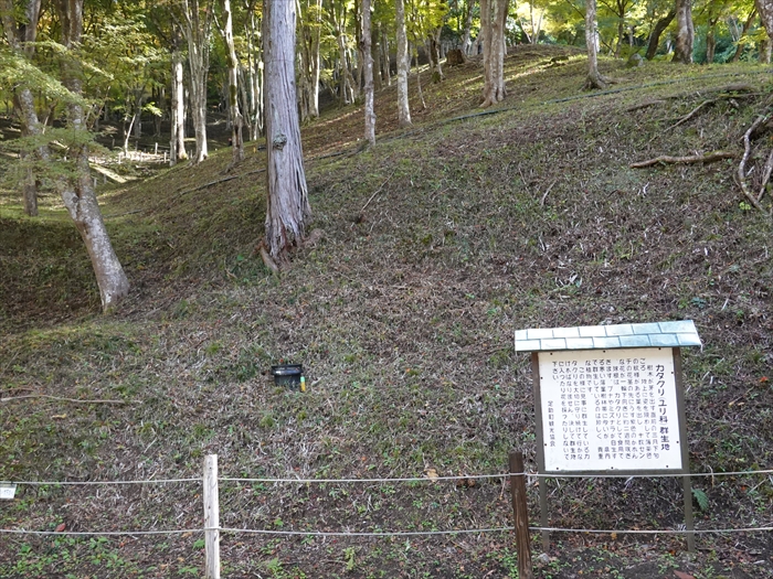には自然の地形を利用して土塁をめぐらしており、ここには居館があったと推定されています。」