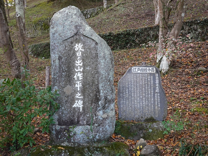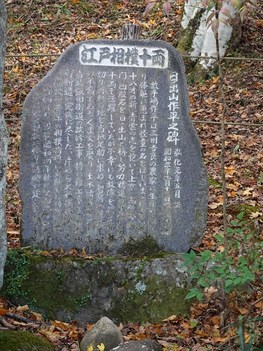 「六地蔵」 の左側に建つ石碑には「 故日ノ出山作平之碑 」と。