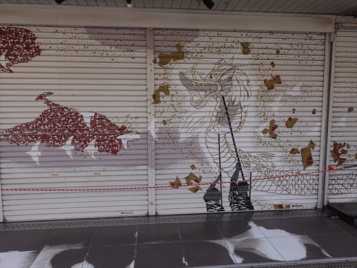 「​ 白浪五人男 ​」 の等身大人形が屋根の上に