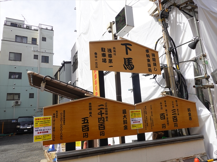 江戸時代における掲示板・「 高札 」と呼ばれる木製の板の如くに、「駐車料金」案内を