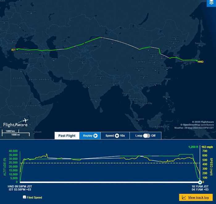 そして イスタンブール空港上空を通過しマルマラ海方向に 向かう。