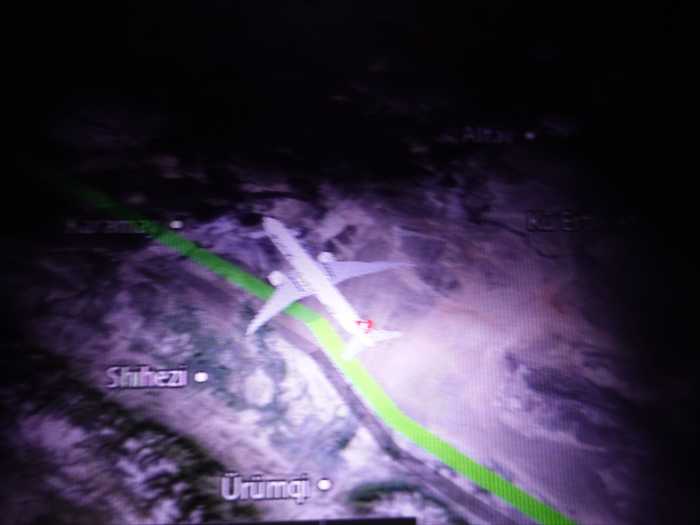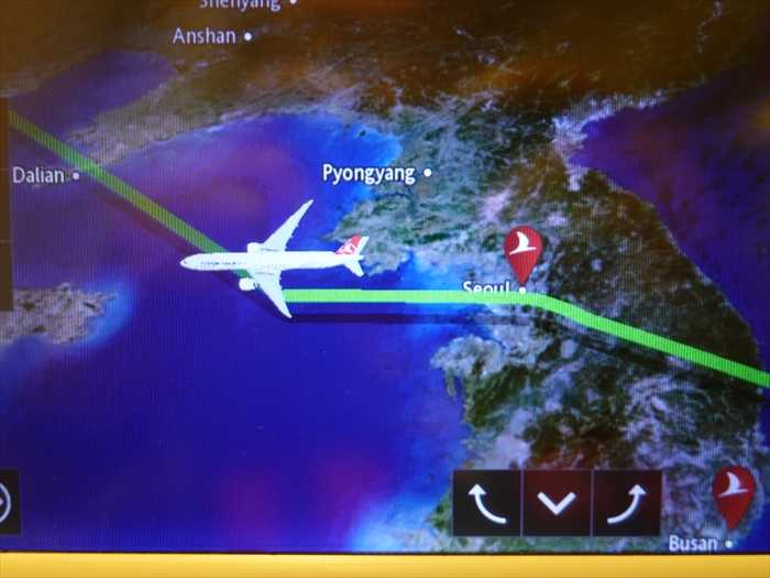 韓国上空へと。23:06。