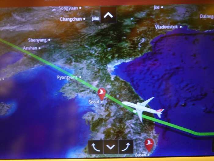 韓国上空をソウル方向へ。23:18。