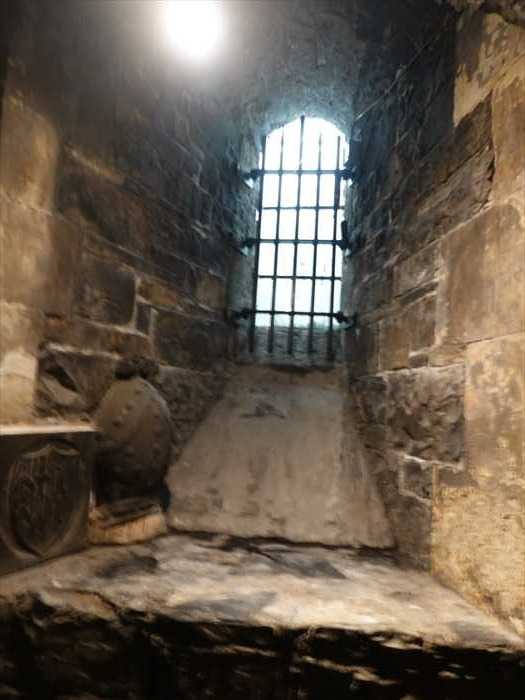 ・構造:厚い石壁に穿たれた縦長の開口部で、外側に鉄製の格子が設置されていた。