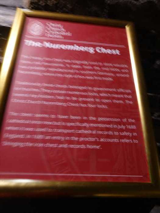 The Nuremberg Chest is a large iron-bound chest, which probably came from Nuremberg, Germany, in the 1680s, and was used to store important cathedral documents.