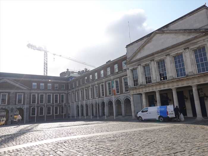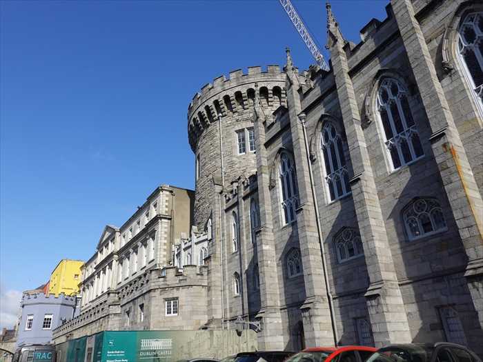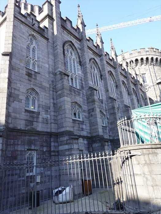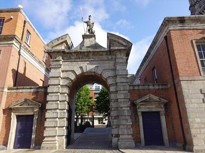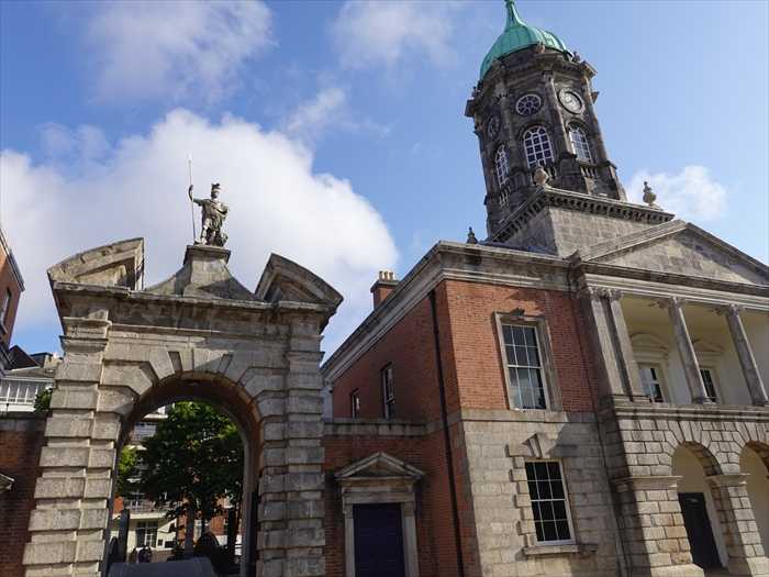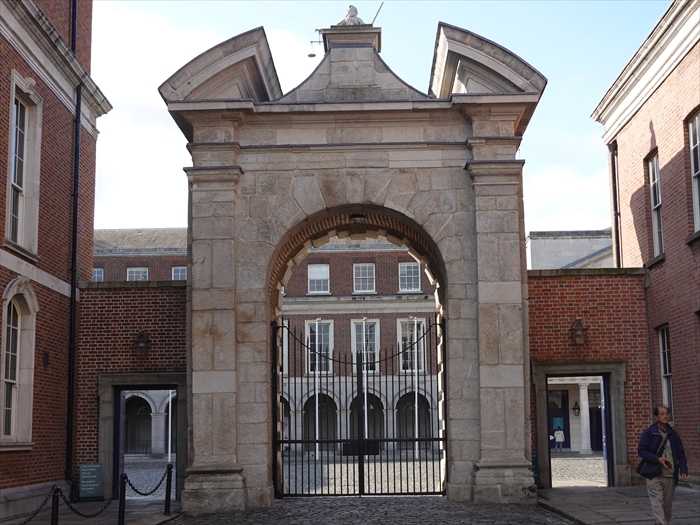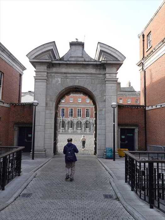 ダブリン城の北東側に位置するCork Hill Gate(コーク・ヒル門)を外側から。 外へ出るとすぐにDublin City Hall(ダブリン市庁舎) やLord Edward Streetに通じていた。 「Cork Hill Gate」と「Civic Sword Gate」は、場所は同一ですが、呼び名や意味合いが時代や 文脈によって異なるのだと。
