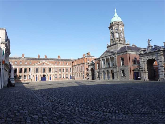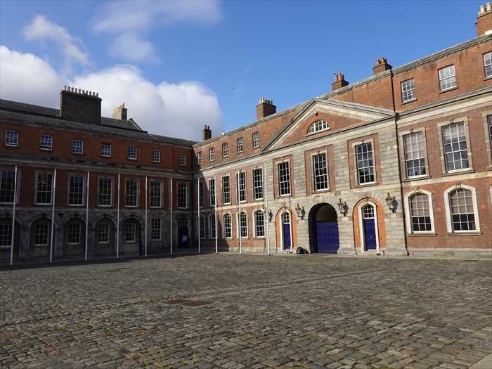 ・ここはかつてアイルランド騎士団(Knights of St. Patrick)のためのダイヤモンドの 「チェーン・オブ・オフィス(Chains of Office)」が保管されていた場所であり、1907年に アイルランド王冠宝石”(Irish Crown Jewels)が盗難された場所 と。 2.右手の角の建物(オレンジ色系の壁、窓が多い) ・State Apartments(ステート・アパートメンツ)への一部