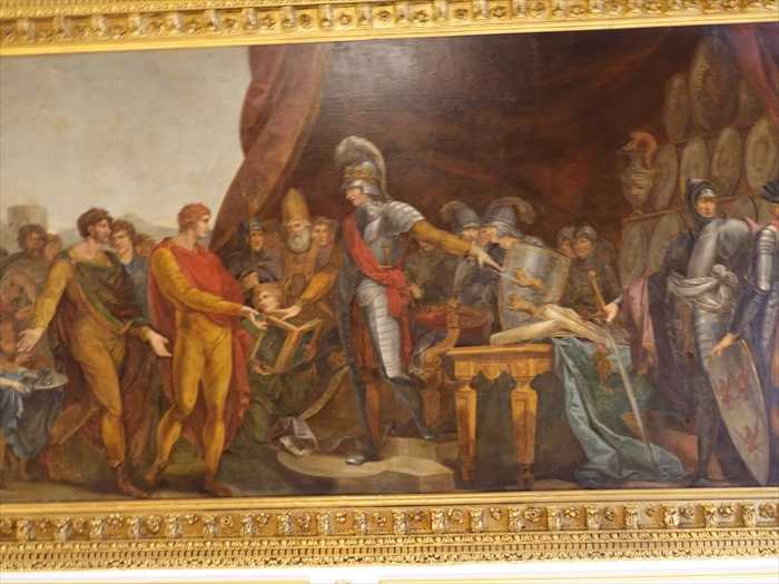 ・これらの特徴から、太陽神アポロの登場シーン、あるいはオリンポスの神々の集いを描いた