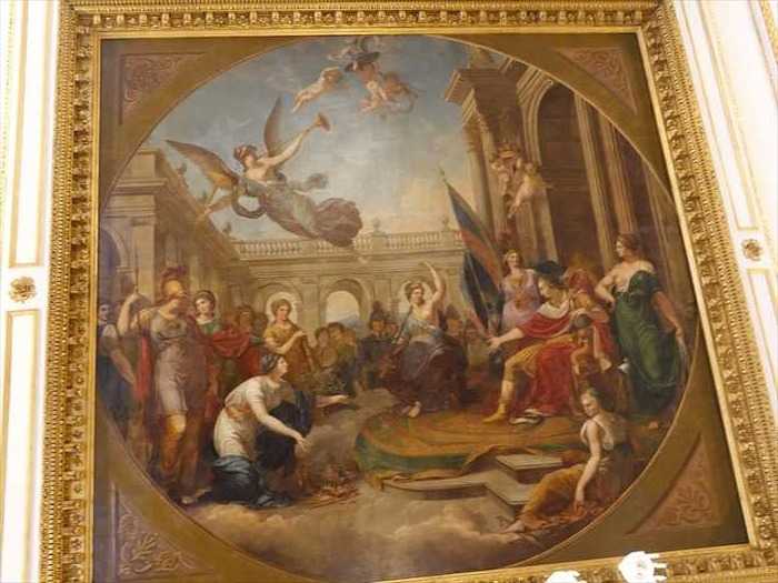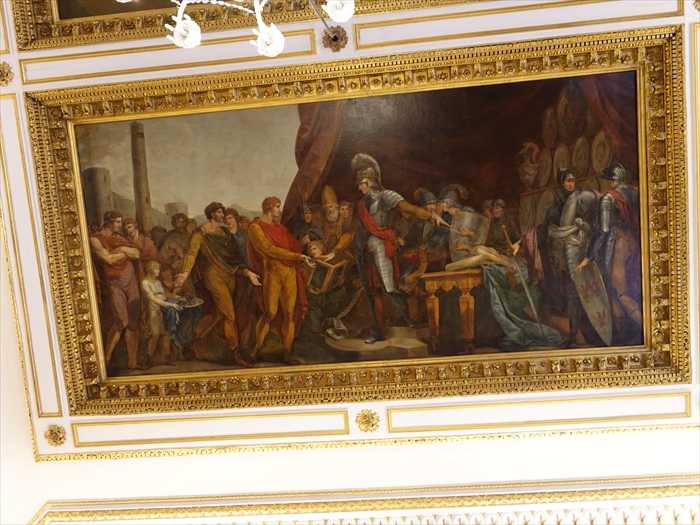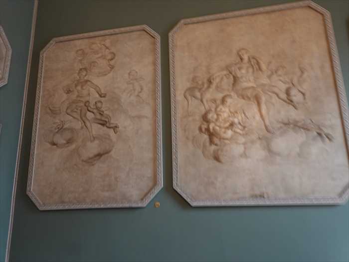 壁面の大きなレリーフ: 古代神話(おそらくギリシャ神話、音楽や芸術の神アポロやミューズに