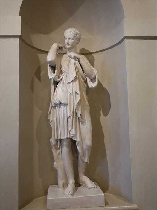 ・弓を持つ女性神という点から、狩猟と月の女神アルテミス(ローマ名:ディアーナ)、