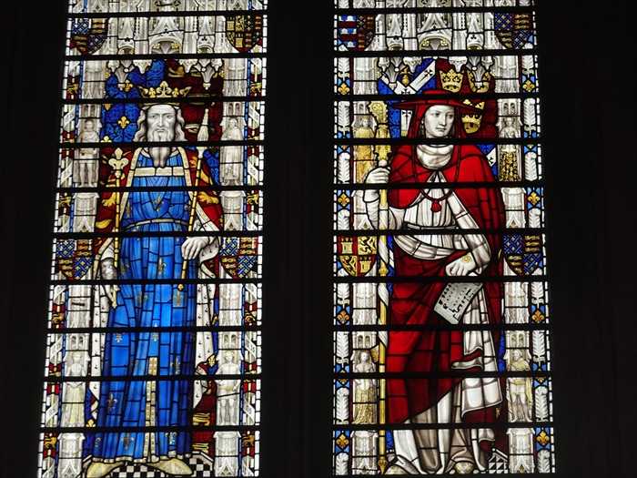 このステンドグラスは 旧約聖書のユダ王国の王 を描いており、 ・左:ヨシャパテ王(King Jehoshaphat) ― 在位25年