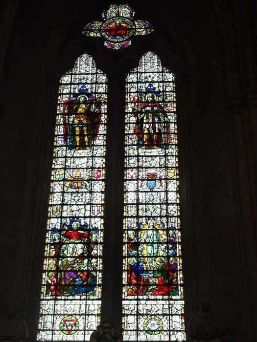 このステンドグラスは、ウェストミンスター寺院の身廊西端・大窓の下段にあるステンドグラスの