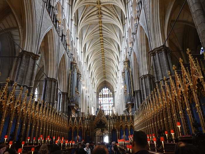再び、ウェストミンスター寺院(Westminster Abbey) 身廊(Nave)の西端方向 を見る。
