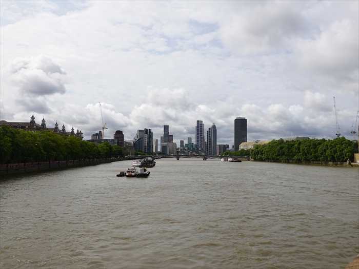 テムズ川(River Thames) の下流方向(東方向)を見る。