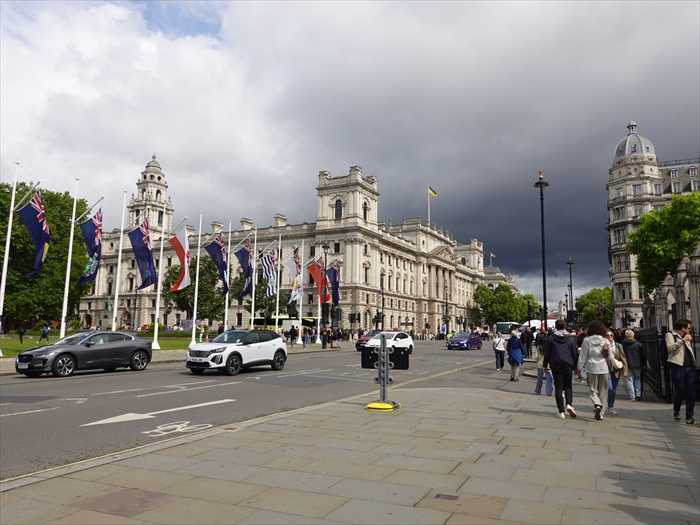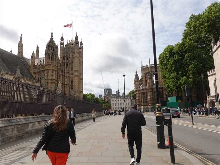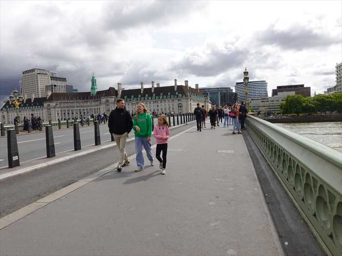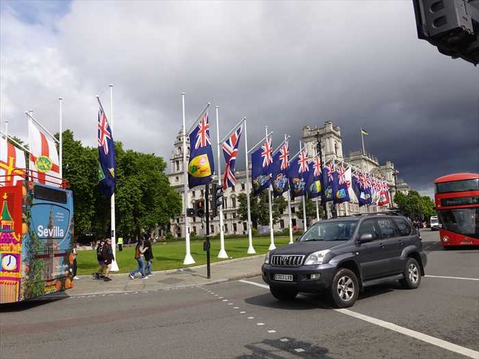 ウェストミンスター橋(Westminster Bridge)をさらに進む。正面に見える大きな建物は、 かつての ロンドン郡庁舎(London County Hall)。 現在は ロンドン水族館(Sea Life London Aquarium)、ロンドン・ダンジョン、そして 観光ホテルやオフィスが入っている と。