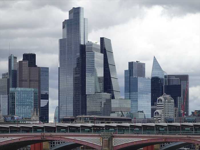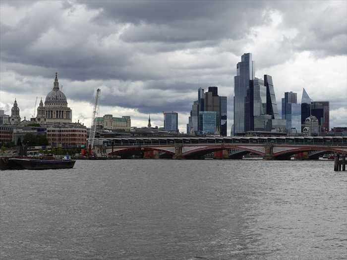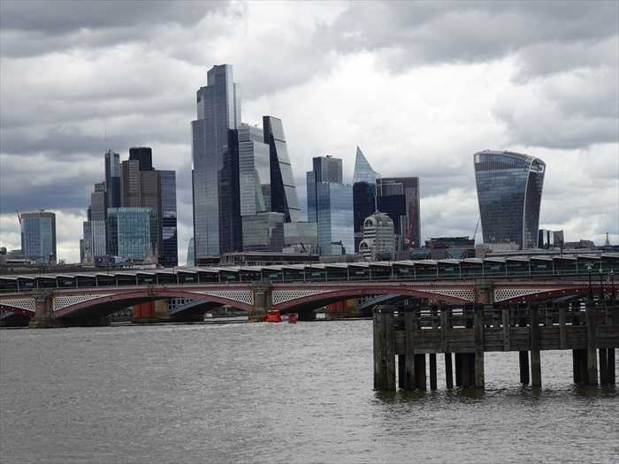 テムズ川越しに見た ロンドン金融街「シティ・オブ・ロンドン(City of London)」の高層ビル群