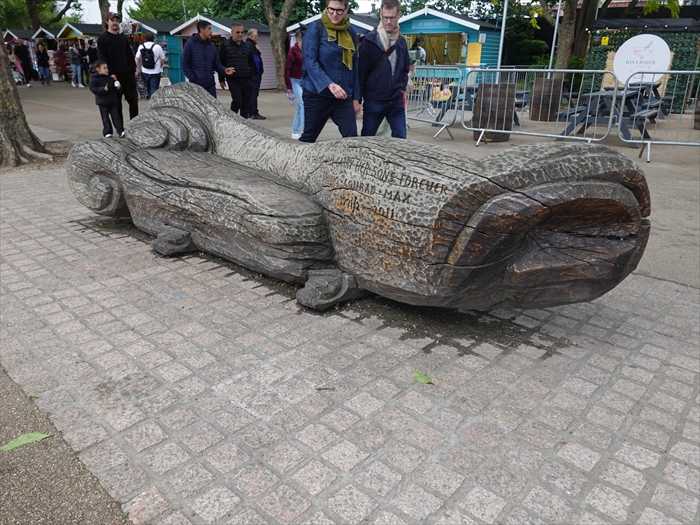 サウスバンク(South Bank)の遊歩道沿いにある 木製の彫刻ベンチ