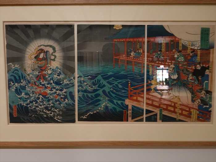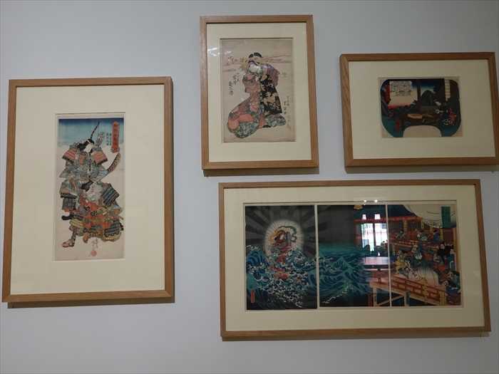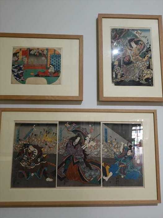 額装されているのは主に 歌舞伎や武者絵を題材にした錦絵で、江戸末期〜明治期の作品