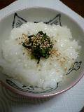 白粥を作り 青菜をトッピングして その上にゴマをふりかけました。