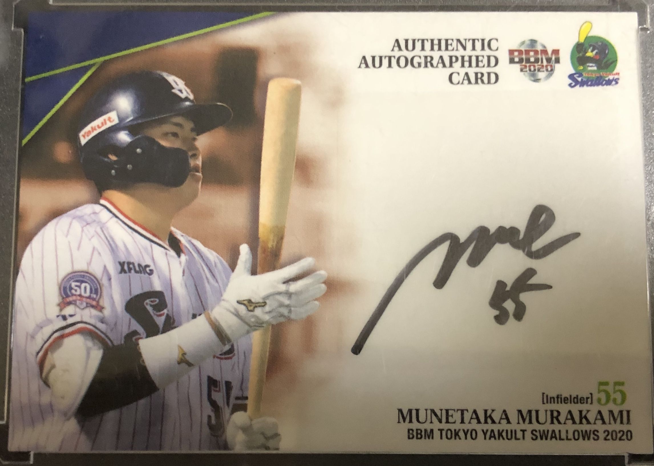 今回はヤクルトを開封しました。 目的は奥川くんのレギュラー 直筆はあまり欲を出してはろくな事はないので。 画像はありませんが、無事レギュラーと更にインサートが出ました。 これは下手な直筆サインよりもうれしいです。 今年のヤクルトは直筆サインが1枚確定みたい(箱2もある) 無事1枚でました。 49枚限定で特殊ナンバー ひっくり返してみると 村上宗隆直筆(半分マイコレ) 去年大ブレイクした村上君ですね。 巨人も指名したんですよね。実は。 ちなみに一応トレードも受け付けていますが、半分マイコレなので、もしかしたらご期待にそえないかもしれません。 ではまた。 今年のヤクルトはタレントぞろいで直筆が一枚確定とヤクルトファンでなくても魅力感じる方は多くいると思います。気になった方は↓クリック BBM 東京ヤクルトスワローズ ベースボールカード 2020 BOX(送料無料) 3月31日入荷予定 価格:7920円(税込、送料無料) (2020/4/12時点)