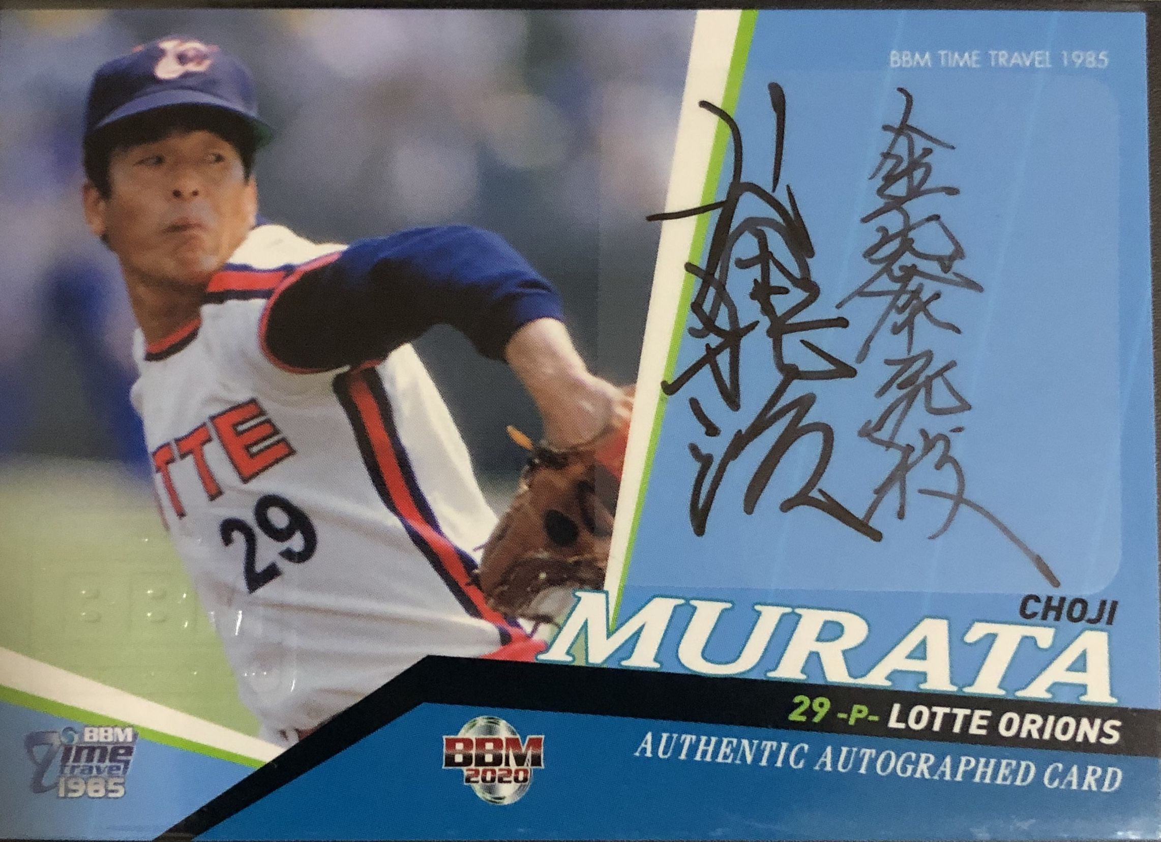 村田兆治さん直筆フォークといえば、杉下さん、村田さん、佐々木さんほかにもいるとは思いますが、僕はこの三人が思い浮かびます。村田さんのフォークボールはわかっていても打てないぐらいすごかったそうです。寝るときもビール瓶を人差し指と中指で挟んで寝ていたという逸話もあります。やっぱり隠れて努力をしているんですね。ただただすごい。BBM2020 タイムトラベル 1985 未開封ボックス