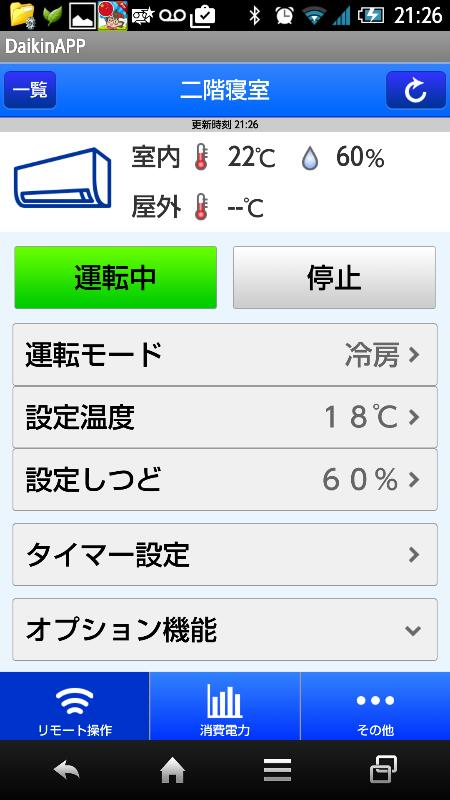 今日、取り付けてもらったエアコンをAndroid appで使ってみました。