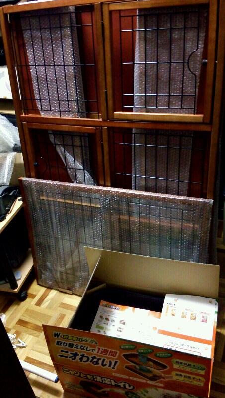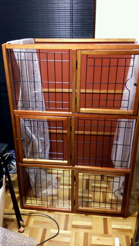 オープン型でなく、屋根のあるやつにしようとしたのですが、あのケージだと、猫が入れなくなるかも。。。と、こんど拡張してから考えることにして、まずは、オープンタイプ買いました