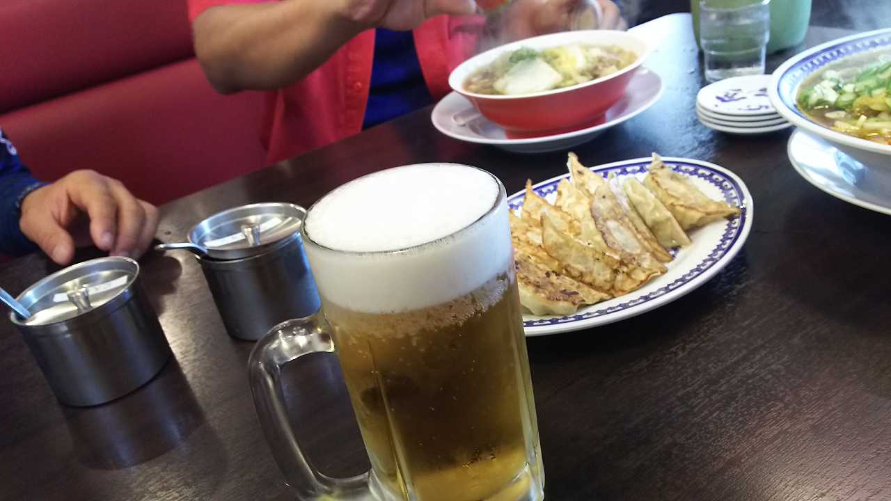 WABさんは、小に、餃子と、ビンビール
