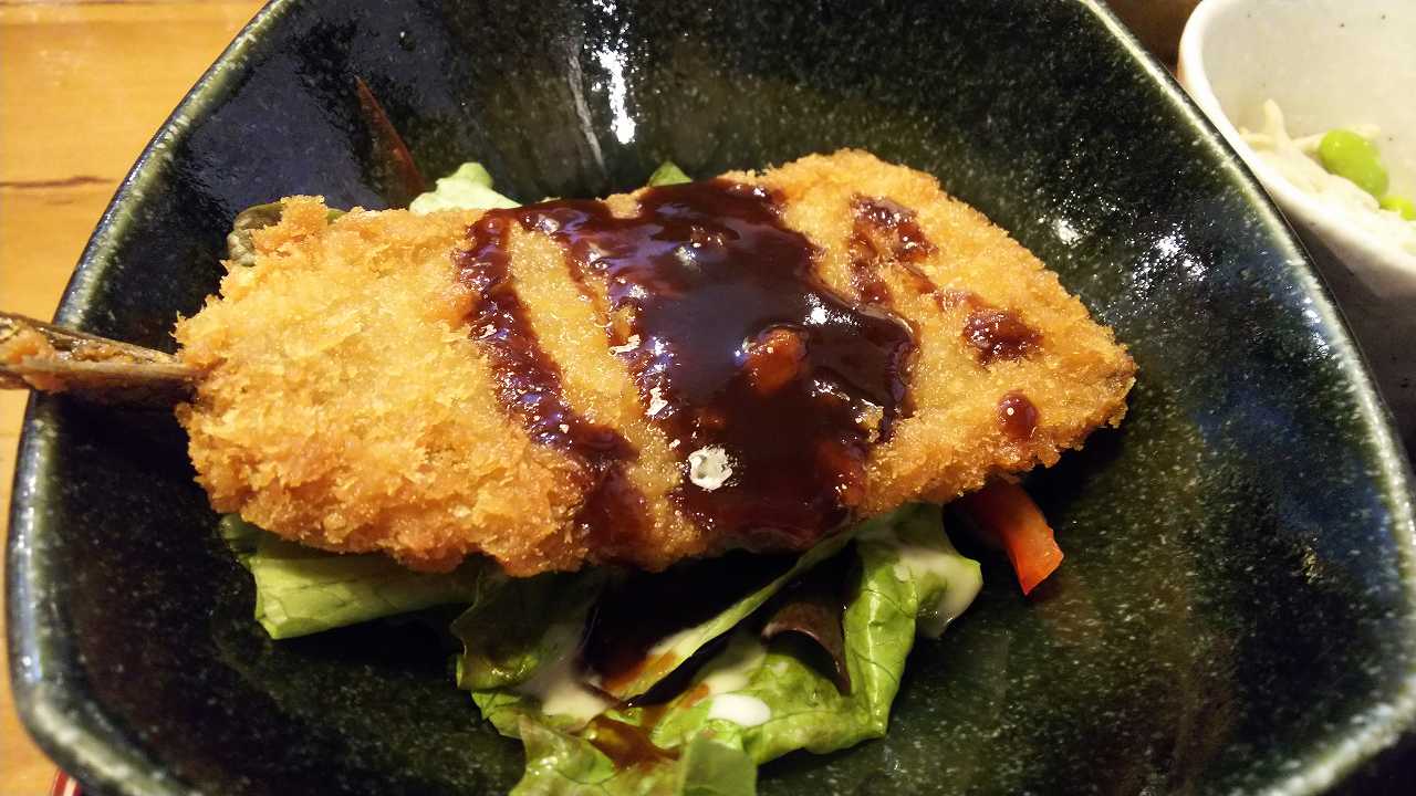 いわしフライひとつで、少ないなあと思いましたが、これが柔らかくて、さくさくで美味しい!少し苦味があるのが、これまた良いです!