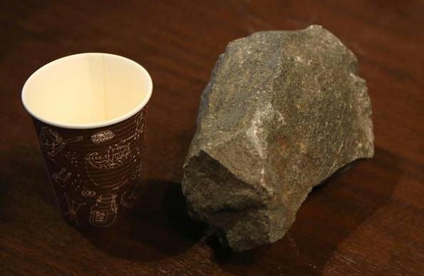 被害を受けたスキー客の男性が持ち帰った噴石=23日午後、群馬県草津町(福島範和撮影)