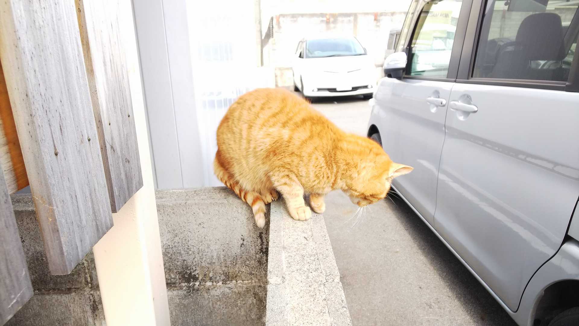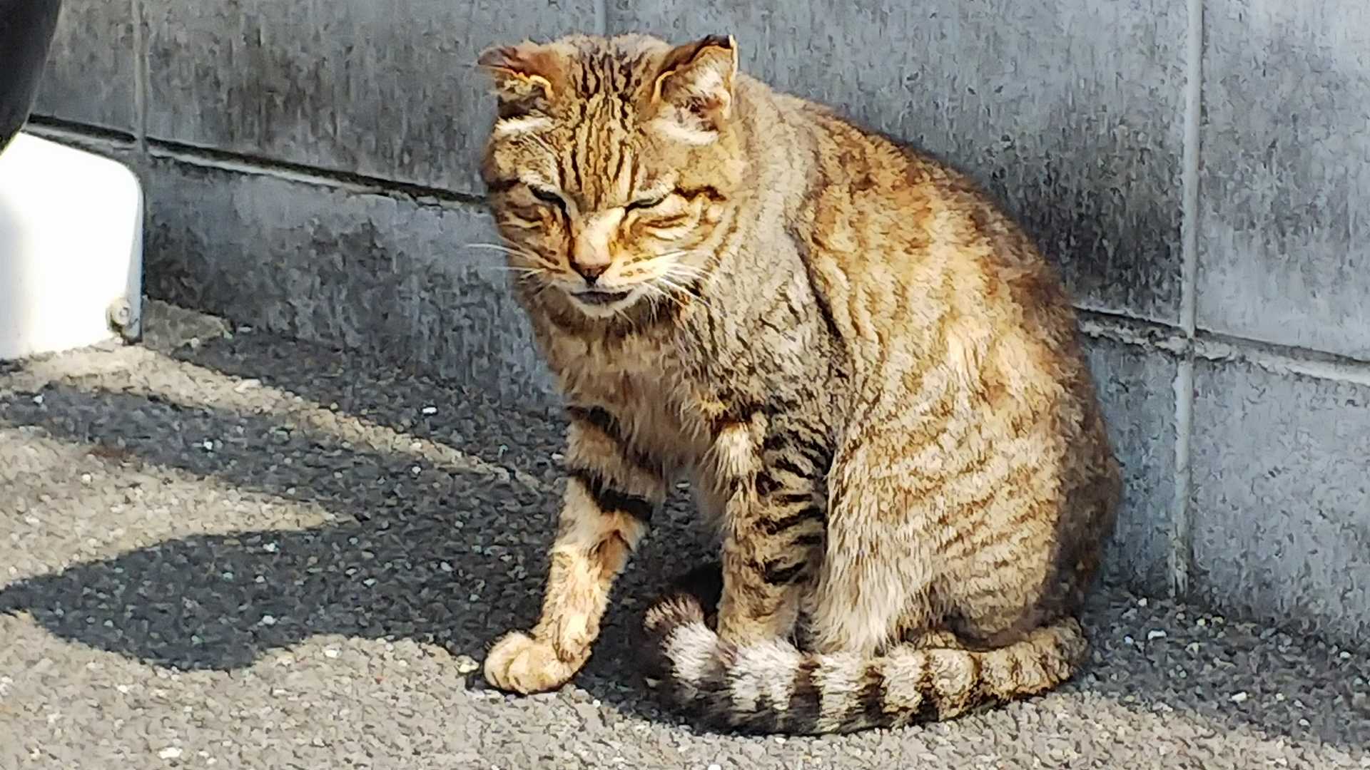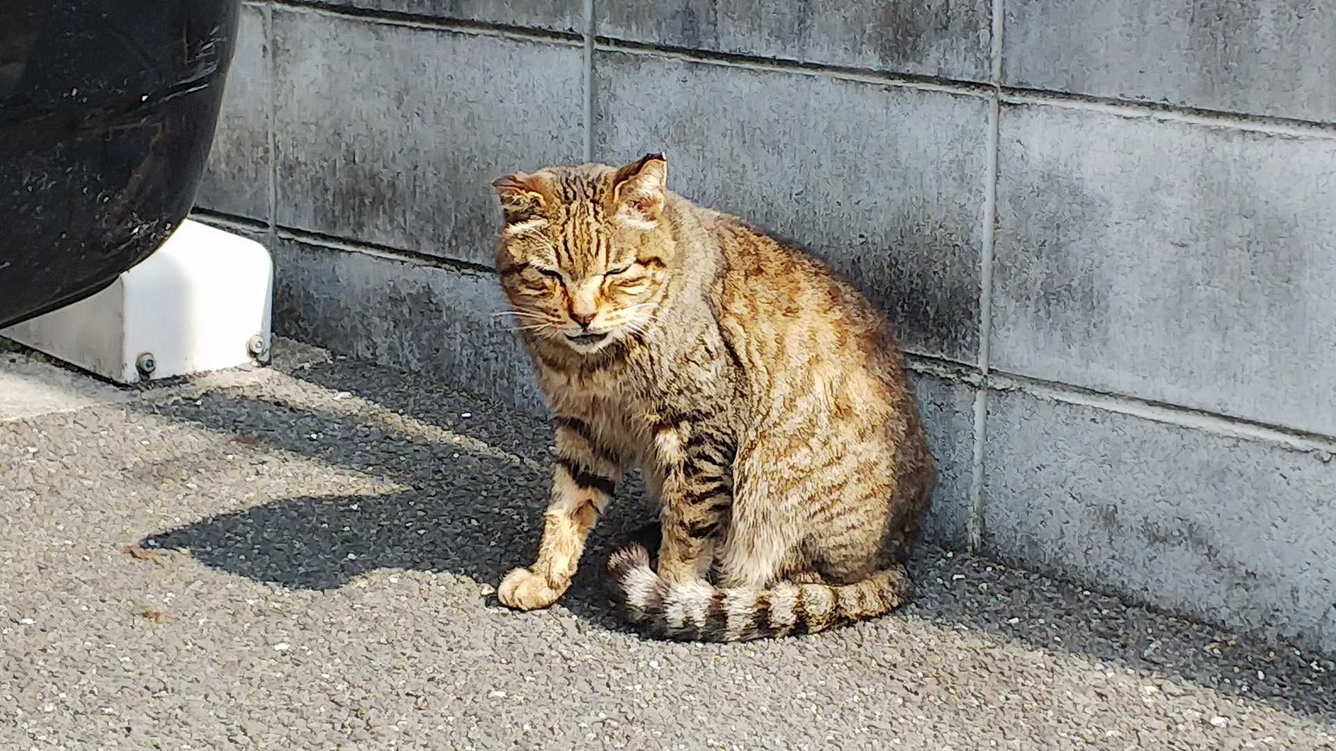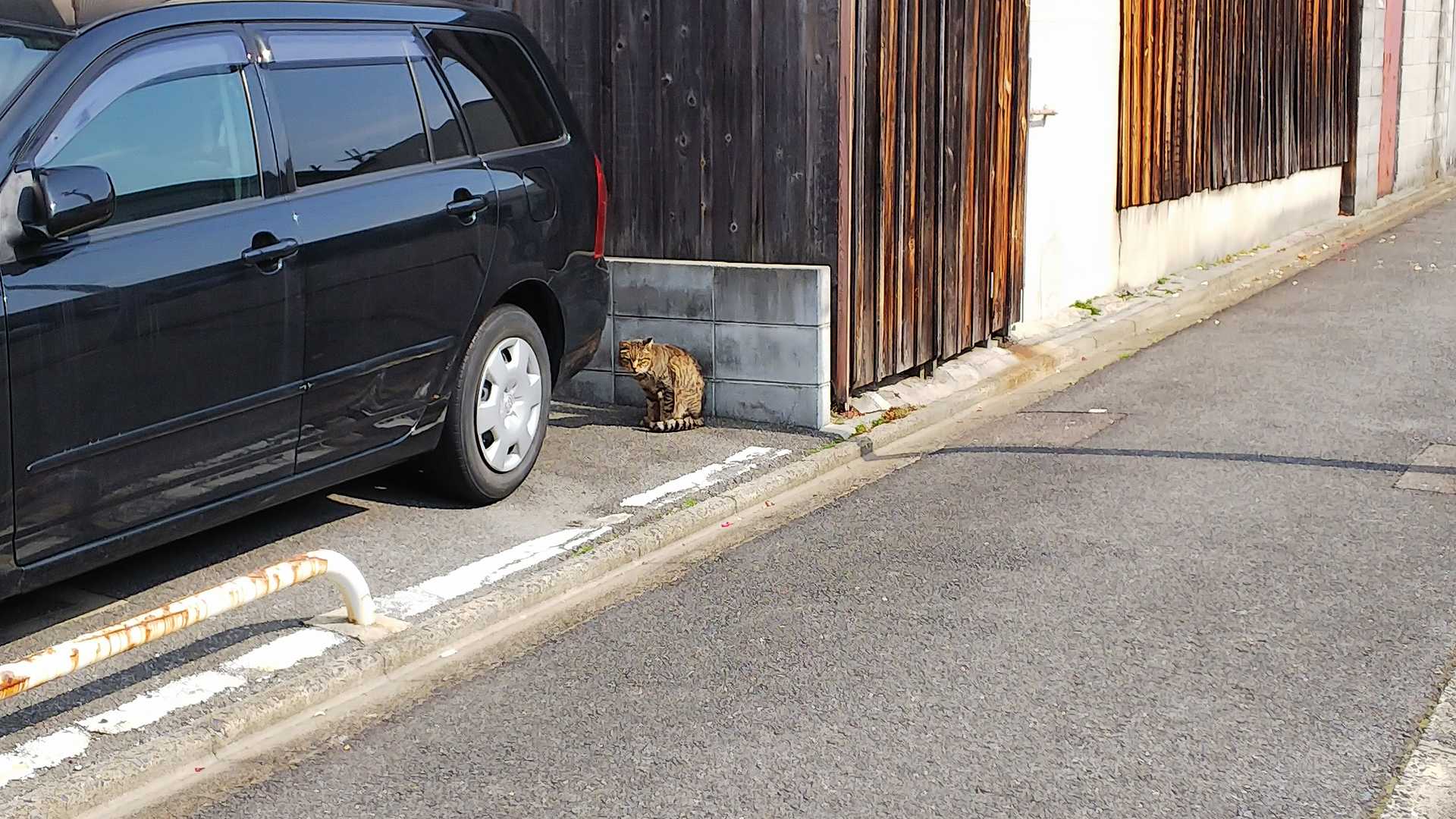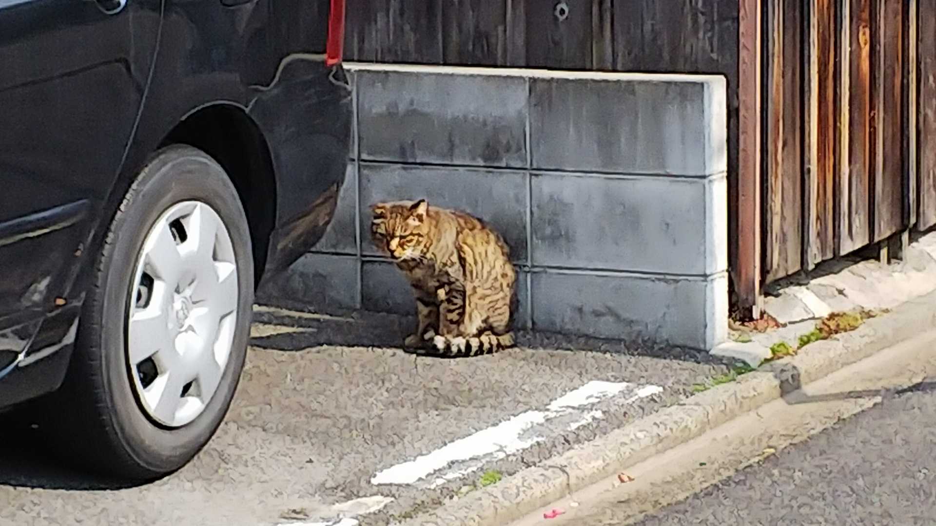 いました!!駐車場のところに、猫ちゃん。。。。虎みたいですね~