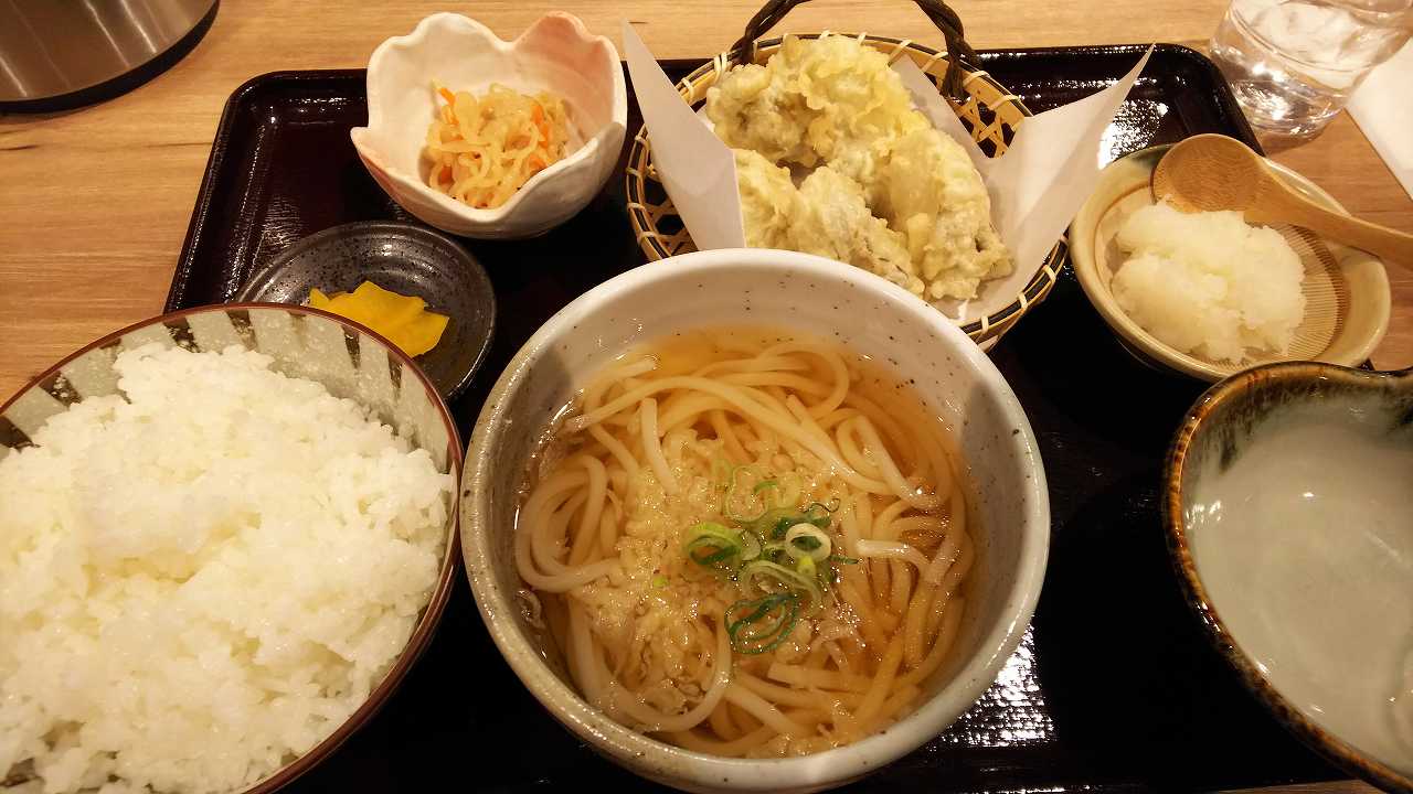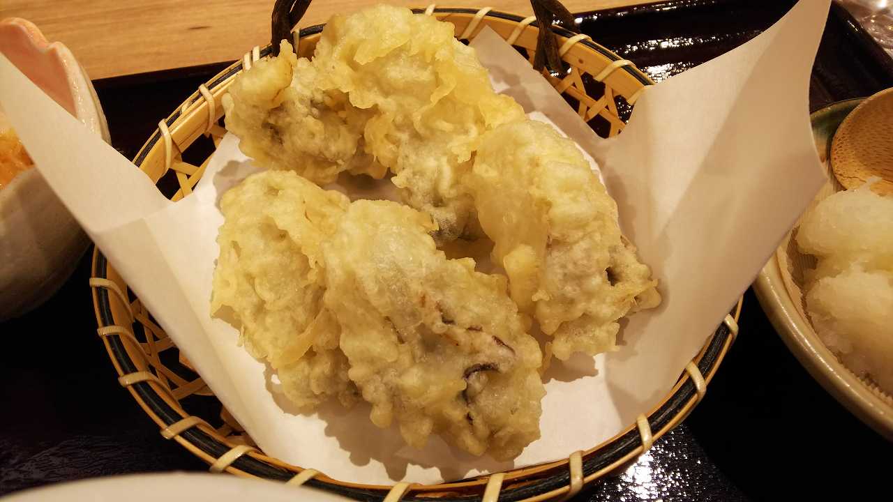 大海老天丼食べたいなあと思って入ると、ランチにカキ天定食なるものが。。。