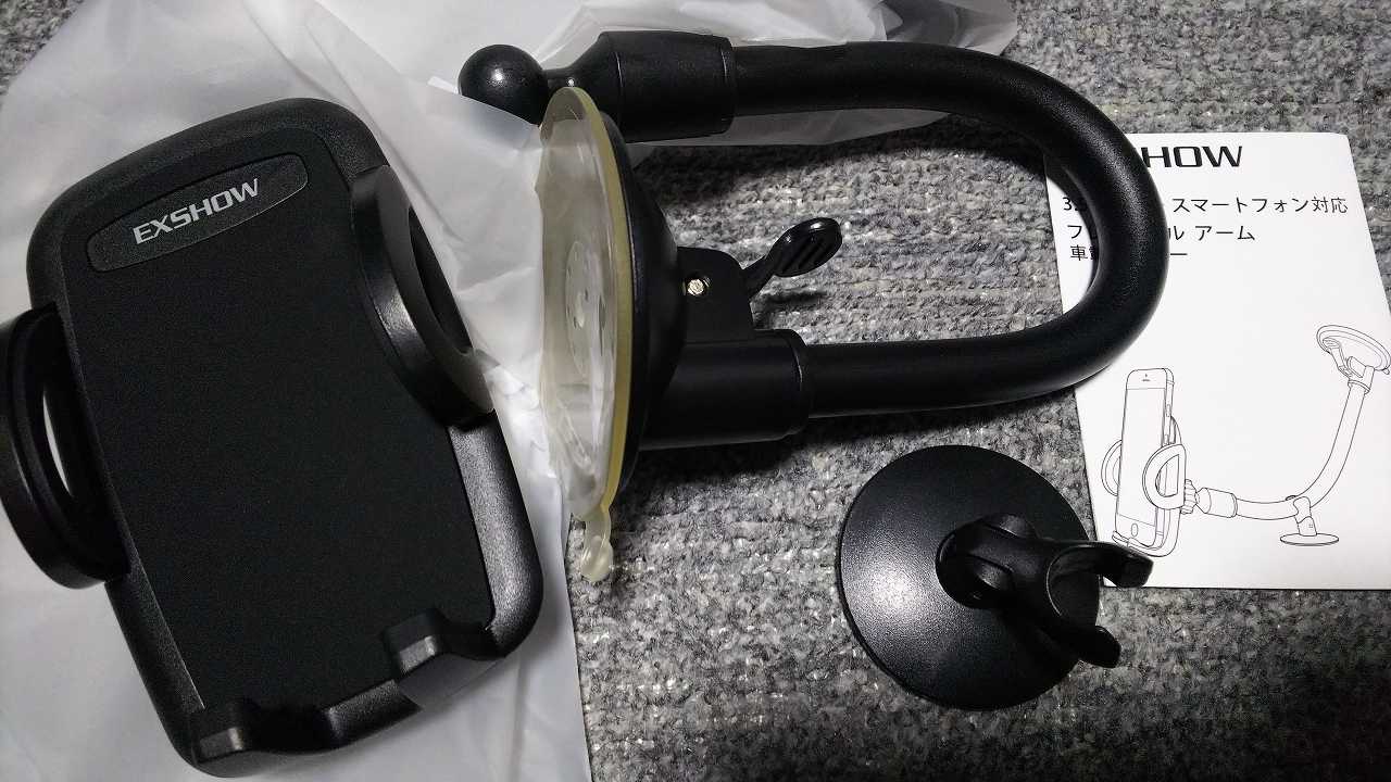EXSHOWフレキシブル フロントガラス車載ホルダー3.5-6インチ携帯電話対応片手操作可能 (黒-自動)