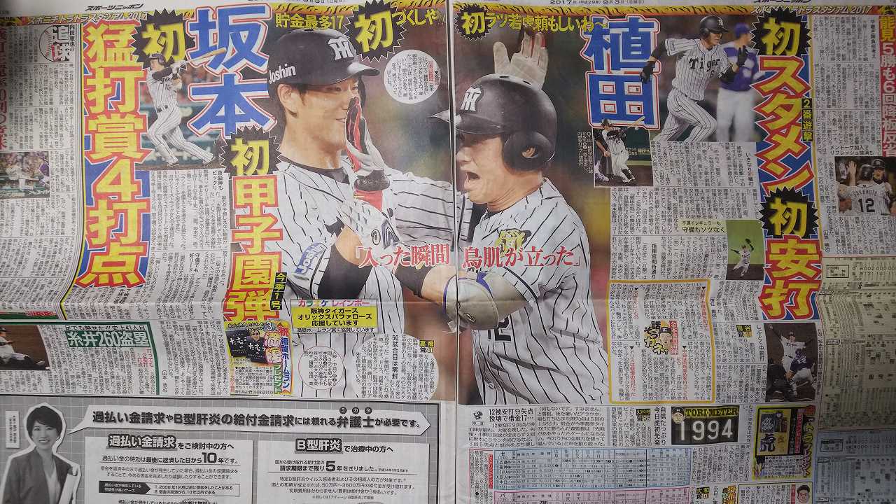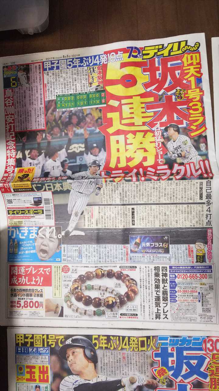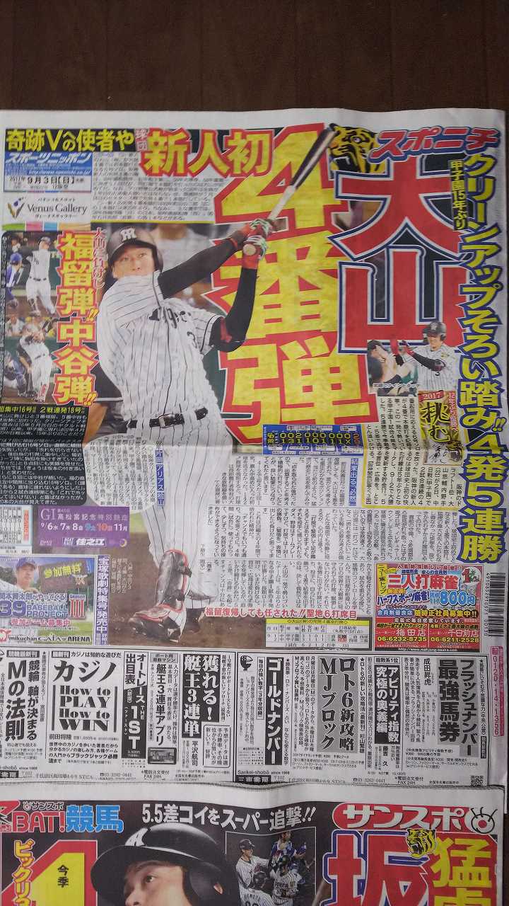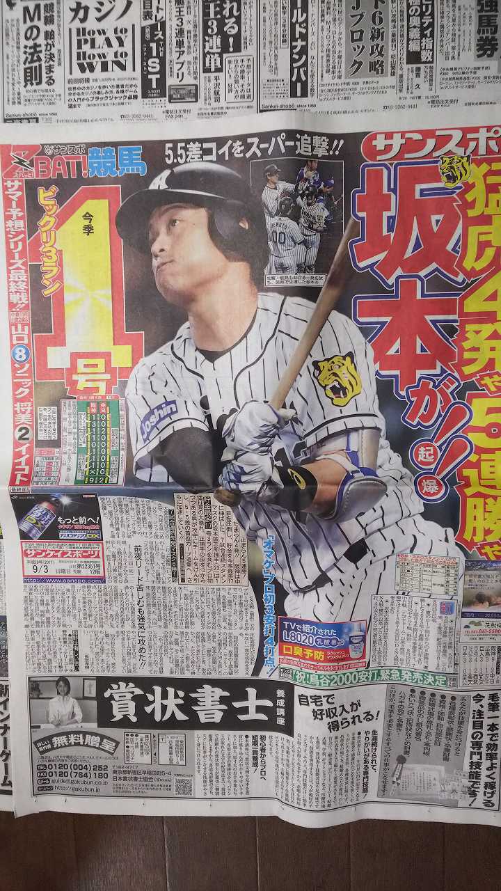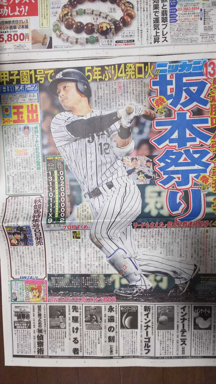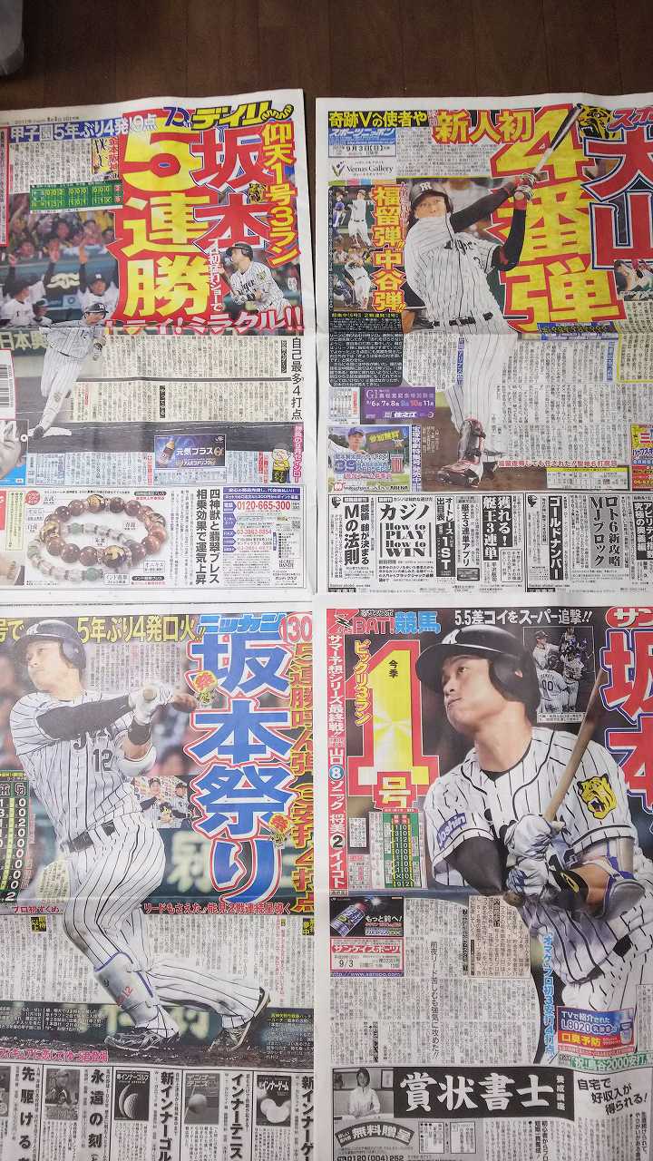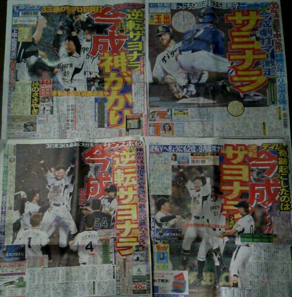 今成サヨナラ打のスポーツ新聞買ってます