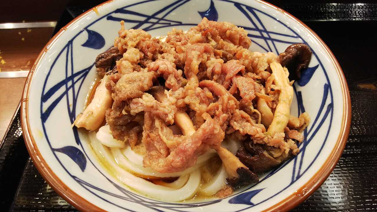 丸亀製麺 イオンモール店 牛肉ひらたけしぐれ煮ぶっかけ