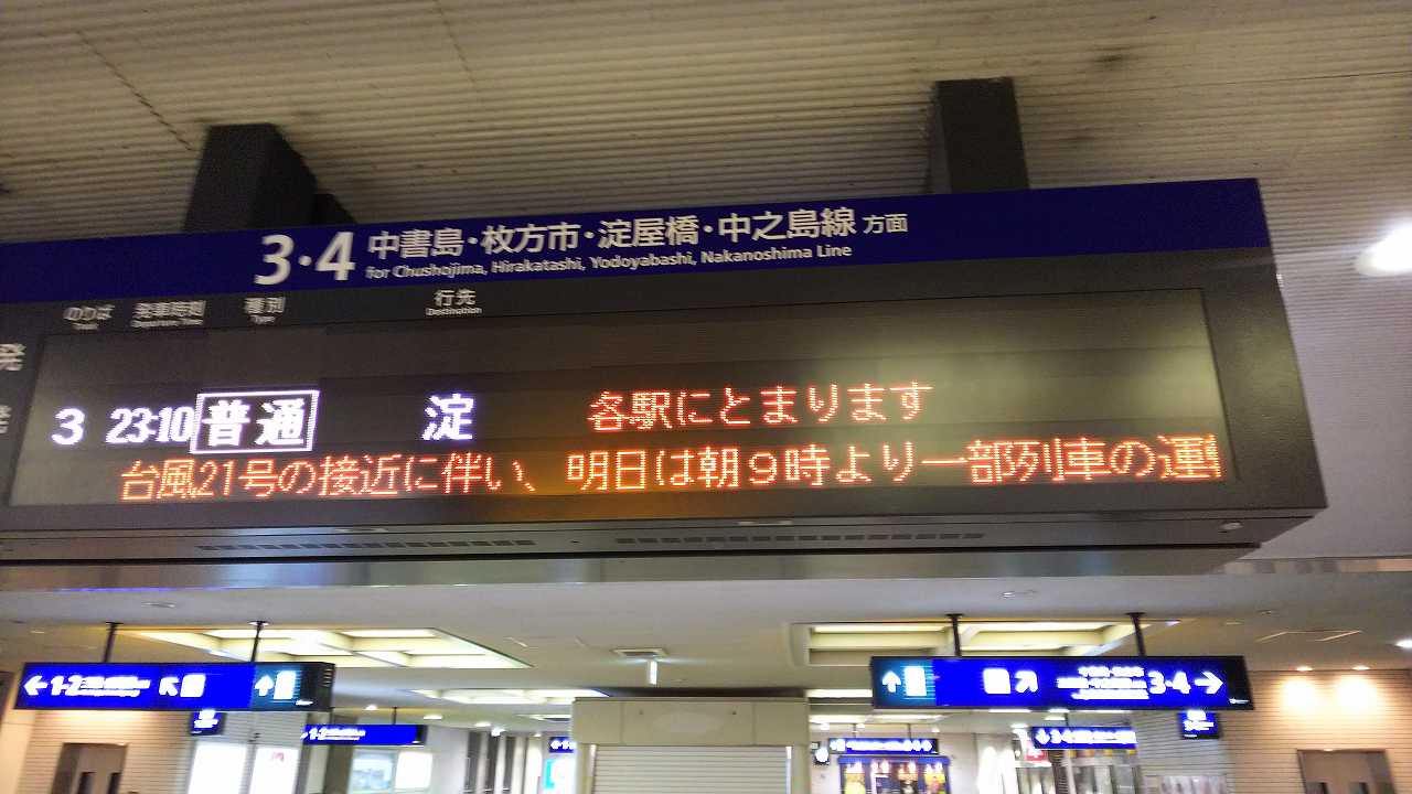 京阪も止まるんだ。。。