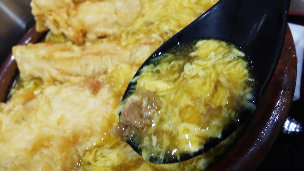 鶏卵カレーって、どんな感じか、前から興味会ったのです 、薄いカレーうどんってかんじ、鶏天も、ジューシーでないなあ。。。