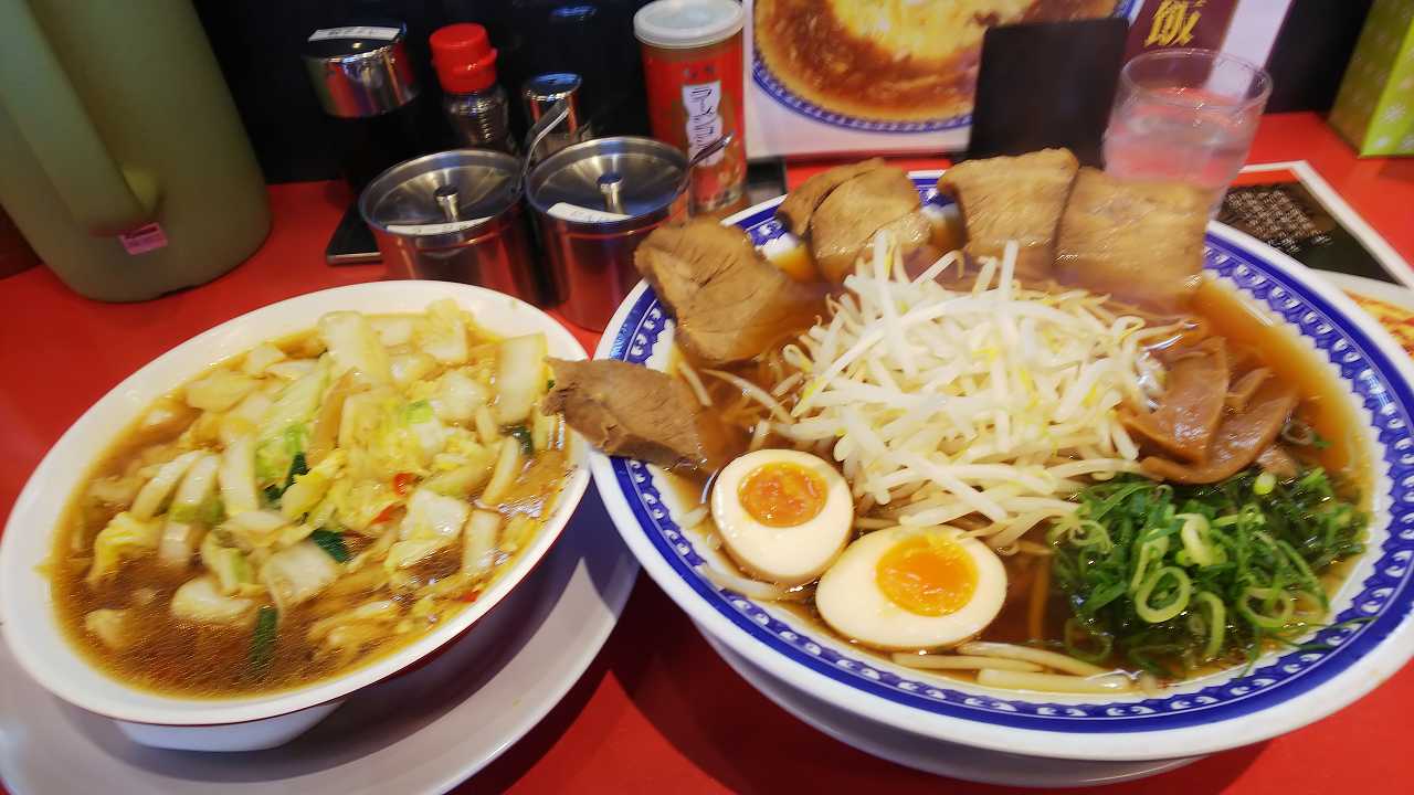 山田先生は、久々にサイカラーメン食べたいってことでしたが、オーター間違えて普通のラーメンモモの大と餃子でした。