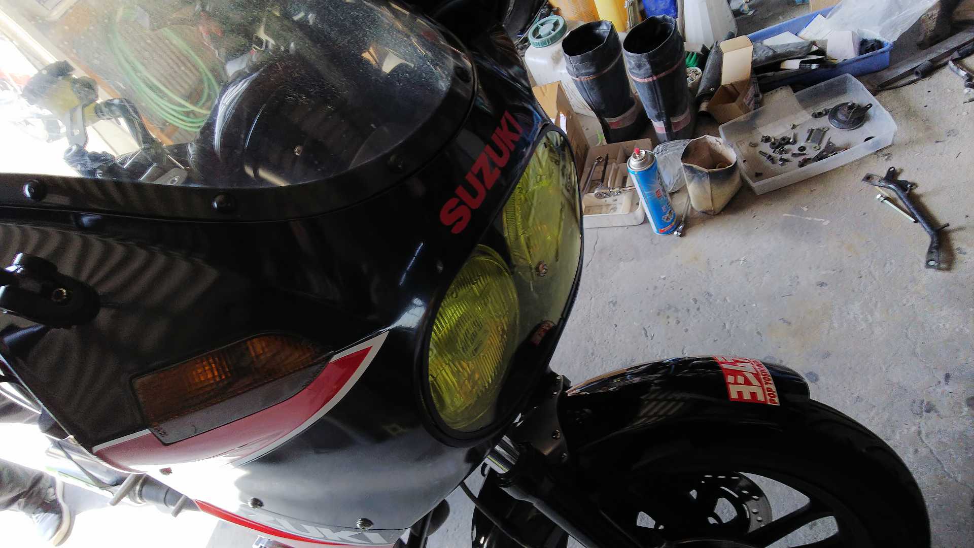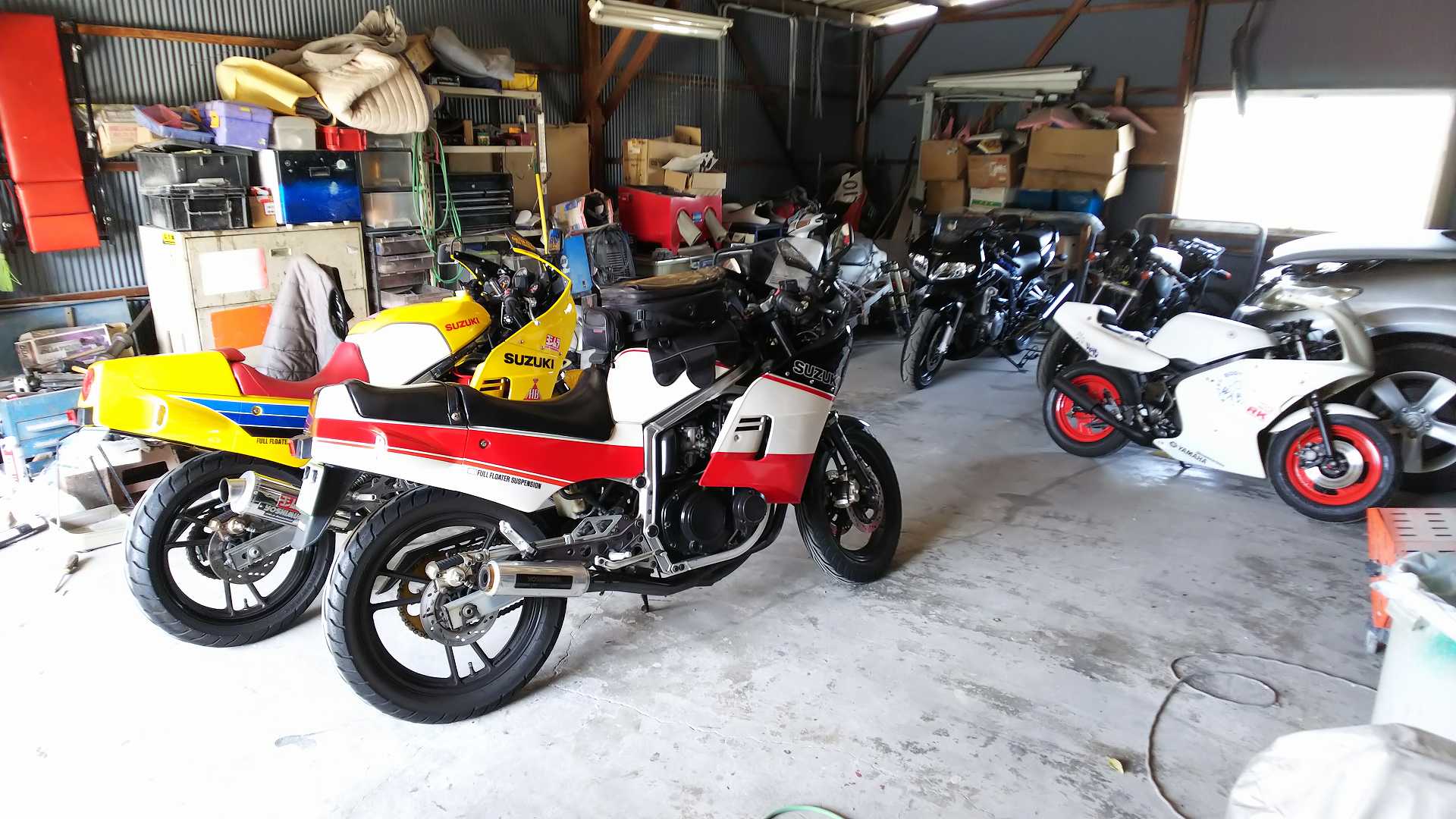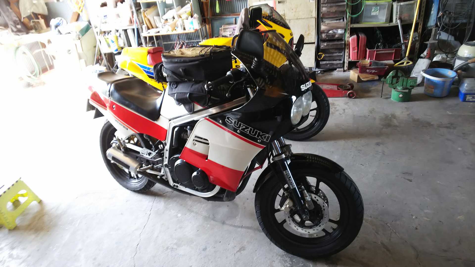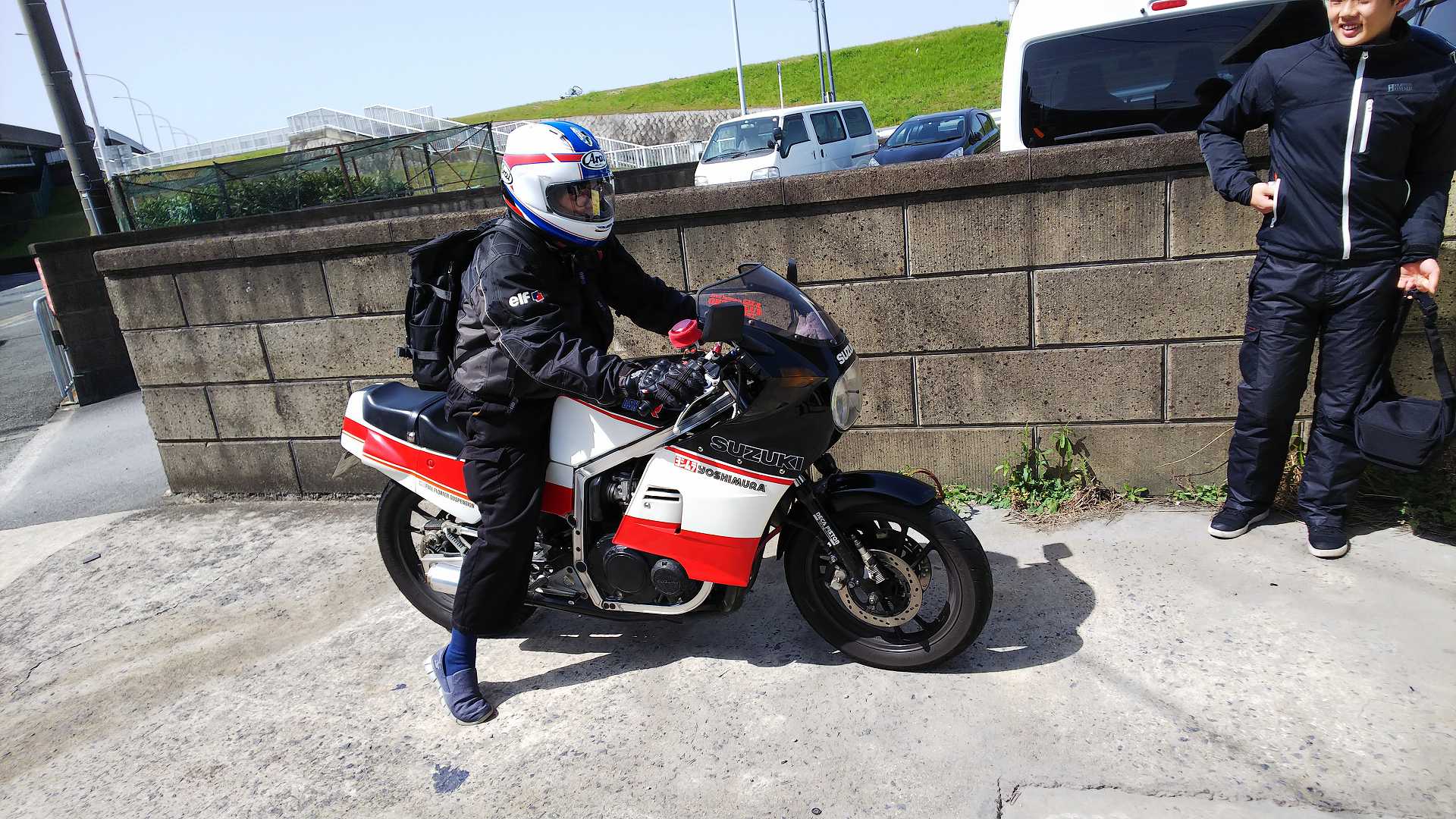春のオイル交換まつり、赤白黒の後は、戻ってHBに! #80sMeeting #GK71B #GSXR @ ワタナベオートボデー